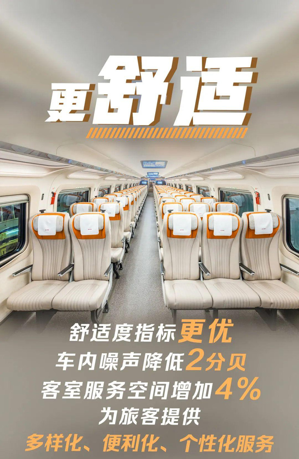 CR450动车组样车采用最新的车下控制箱设计方案,通过设备集成和布局优化,车厢内部分电气设备改到车下,因此可以腾挪出更多空间,每列车厢可增加乘客座位40多个,进一步提升旅客乘车环境和舒适度。